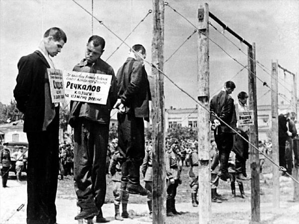 Но на практике повешение применялось и военно-полевыми судами на фронте в отношении захваченных в плен гитлеровских карателей и полицаев. Например, с 15 по 18 декабря 1943 года в военном трибунале 4-го Украинского фронта шел суд над сотрудником гестапо и предателем из числа граждан СССР. Обоих подсудимых приговорили к смертной казни через повешение и повесили.