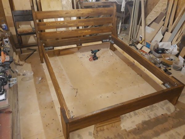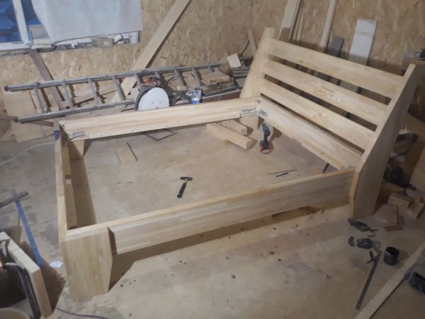 Все бывает когда-то в первый раз! Жена сказала ‐надоел диван, хочу кровать. Собственно купил мебельный щит, масло, воск и понеслась. Делал не спеша, по полтора часа вечером после работы. Первый блин не комом...