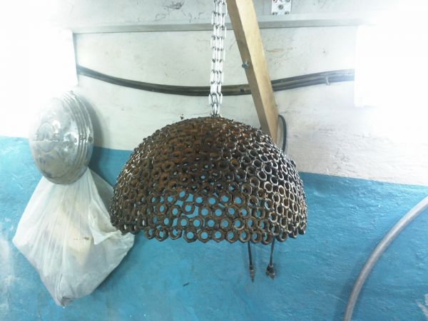 Всем привет. Решил сделать люстру из гаек. Изначально хотел делать целиком шар из гаек, но терпения не хватило))