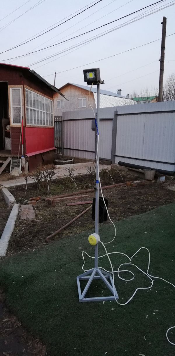 Сейчас строю металлический гараж, порой после работы, да и темнеет сейчас рано. Прожектор используется постоянно.