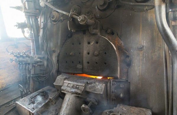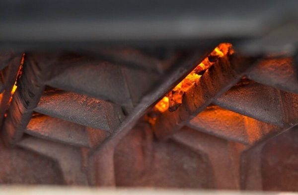Если заглянуть снизу, то можно понаблюдать за процессом горения угля через колосниковые решетки топки.