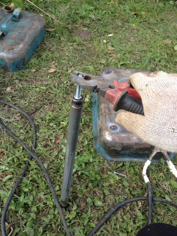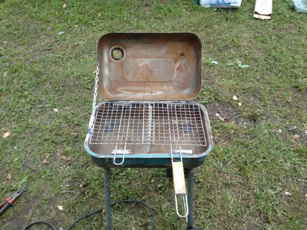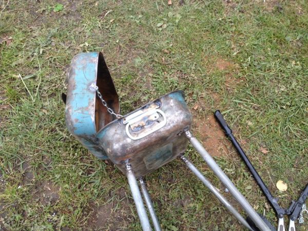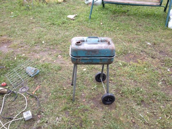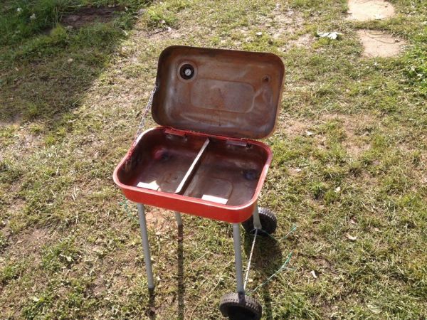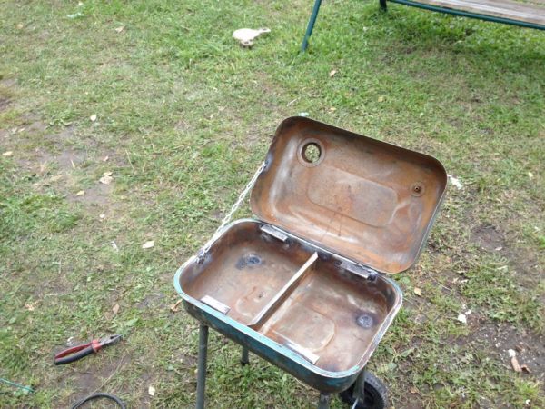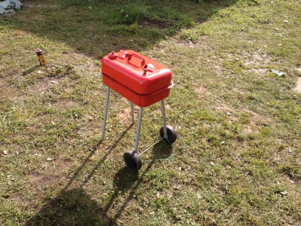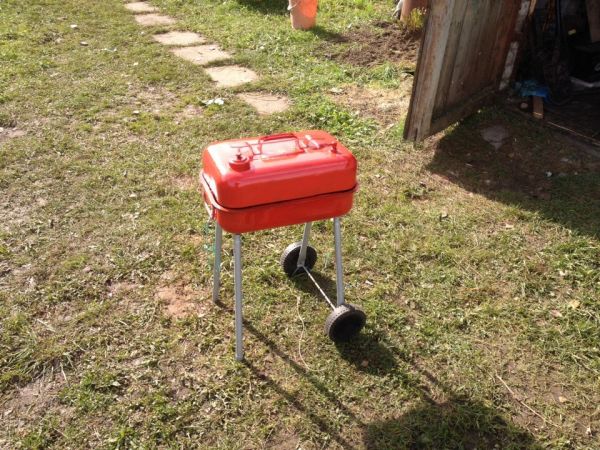 Всем привет! решил сделать вот такой передвижной мангал, из того что было, а именно канистра, ноги от старого мангала, ручка и цепь --это все что мне понадобилась для сборке этого мангала!разрезал канистру по палам . к дну мангала приварил гайки а к ножкам болты, чтоб в случае чего я смог без труда его разобрать)дальше приварил петлю и ручку !и ограничитель в виде цепи чтоб не падала крышка)покрасил все это дело термостойкой краской вот и все!всем хорошего дня)