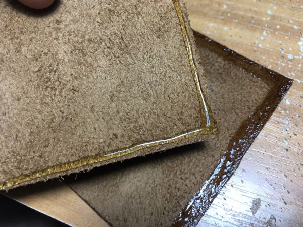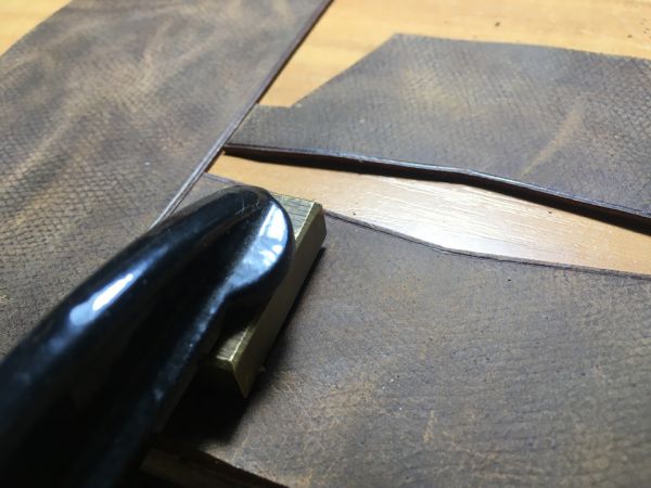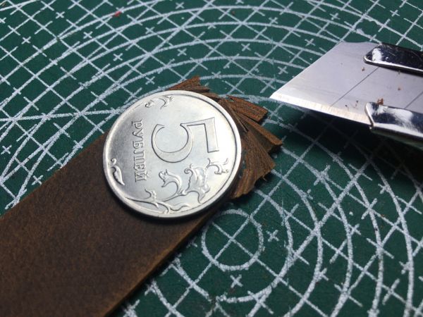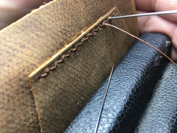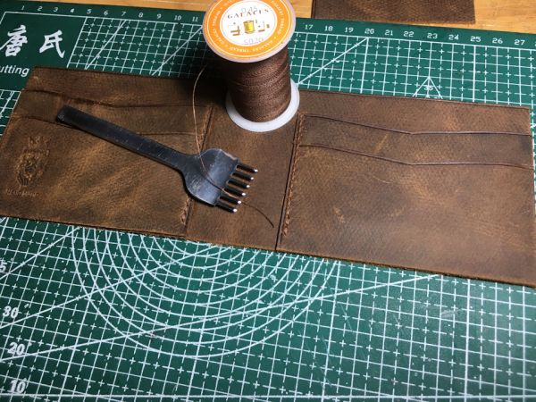 Пришиваю слоты для карт. Края слотов шерфую ножом.