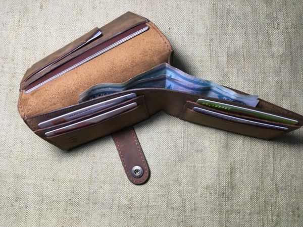 Приветствую друзья! Кожа пр Италия crazy horse 1.3, 1.5 mm, нить вощеная Galasis 0.45 шаг стежка 4 mm. На торцах использовал средство для урезов TOKONOLE, краска для урезов vlotho цвет «тарракотовый . Изделие вмещает паспорт, авто-доки, карты, купюры. Размер 14х9.5х1.7. Процесс и результат ниже. Всем отличного настроения и приятного просмотра.