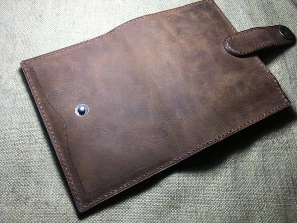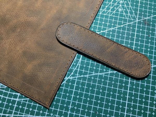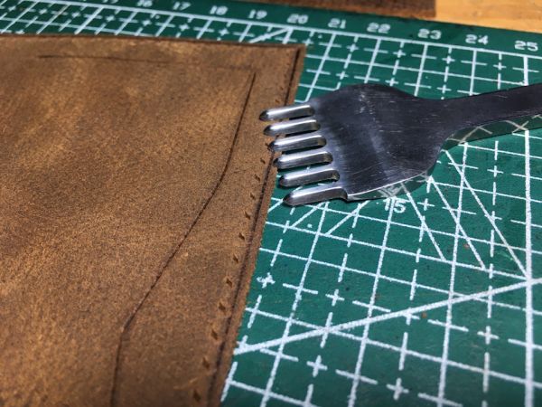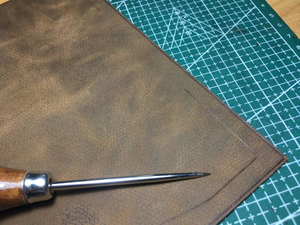 Лицо обложки перед сборкой размечаю и пробиваю под шов.