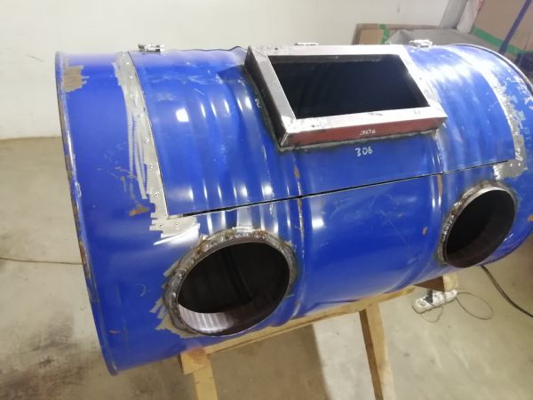Единственно, что я заколебался, так это вписывать прямоугольное в круглое. И в процессе уже даже пожалел, что из бочки начал делать. Хотя вышло конечно неплохо. Но больше таких фортелей внутри бочки с сварочником я исполнять, конечно же не буду о_0