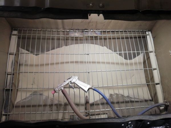 Сетку на "пол" взял тоже с приемки, из подходящей по размеру магазинной товарной здоровой корзины. пистолет пескоструйный обычный из магазина автоинструментов, 1100 рублей комплект с соплами. Шланг жигулиный с патрубка бачка радиатора.
