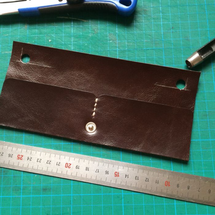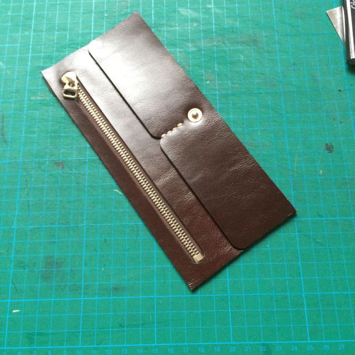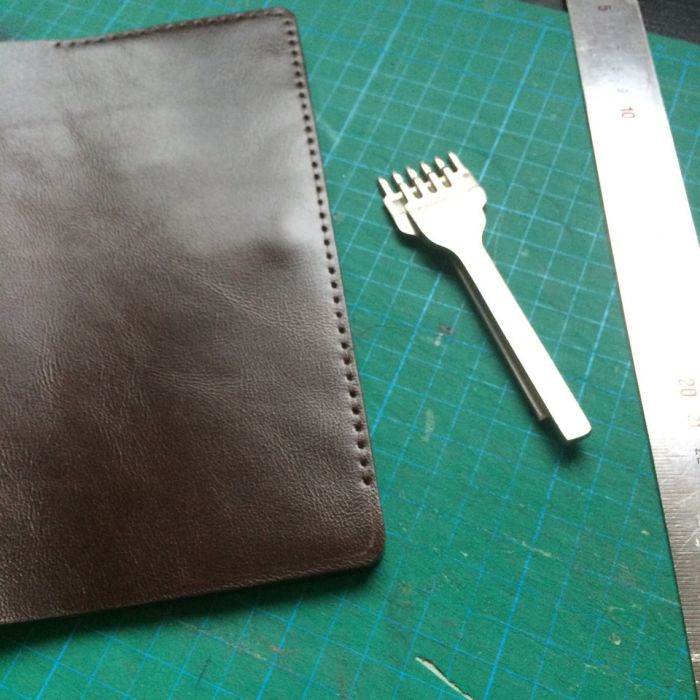 Далее на правой части делаем отдел для молнии, для этого намечаем, пробиваем отверстия 10 мм в диаметре и прорезаем …