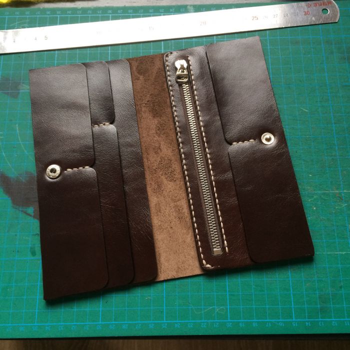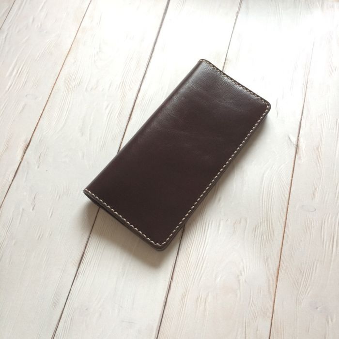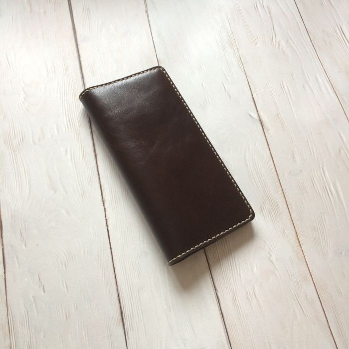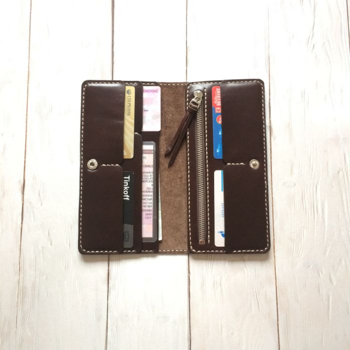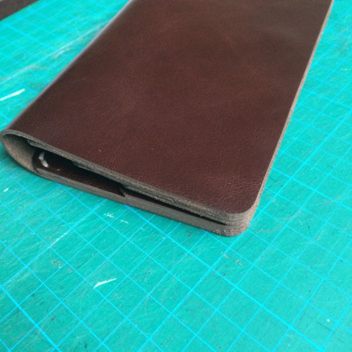 И кожа, в данном случае КРС галантерейная, с эффектом Pull up, толщиной 1,1 мм, в цвете шоколад, скорее горький )))