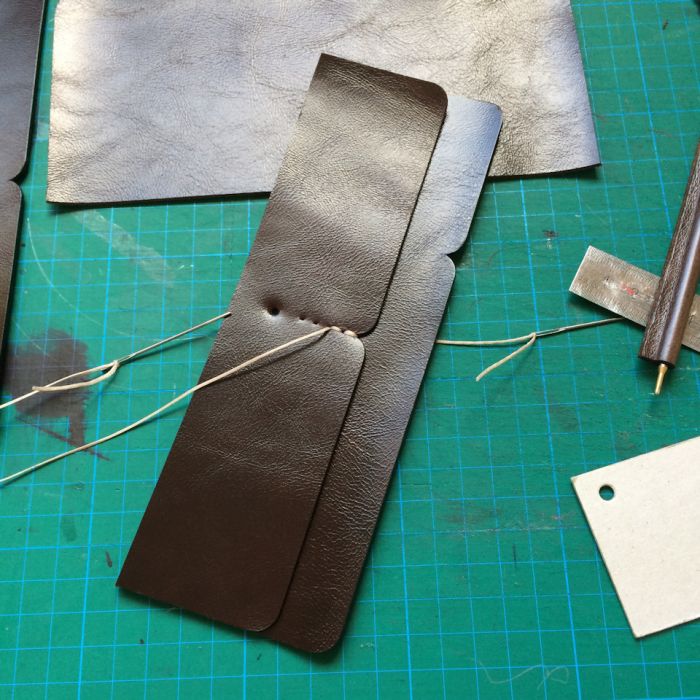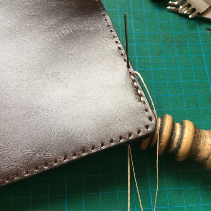 И прошиваем вощеной нитью толщиной 0,8 мм …