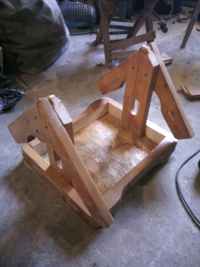 Из такой поломанной табуретки, которая восстановлению не подлежит, решено сделать кормушку