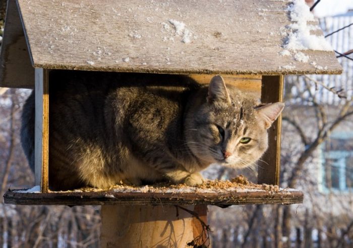Кормушку делал низкую для того чтоб вороны, сороки, сойки и коты не лезли)))