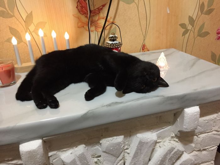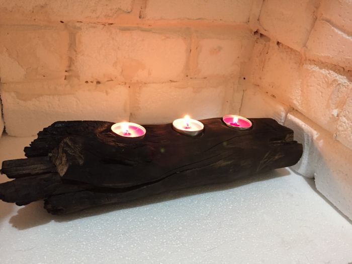 Всем привет. Давно вынашивал идею сделать фальш камин из коробок, но что то все не клеилось. В этом году решили основательно подготовится к празднику, и начали реализовывать покупкой ёлки и собственно изготовлением камина. За основу взяли коробки и пенопласт толщиной 5 см Кирпичи вырезал из 2 см пенопласта, придавал структуру битого кирпича шкуркой, абсолютно каждый кирпичик шлифовался руками, ну с пивом и кальяном дела идут забавнее Кирпич клеил на клей титан, «швы» имитировал гипсовой шпаклевкой. Верхнюю столешницу обклеил плёнкой под мрамор. Чтобы выглядело максимально приближено к настоящему камину взял рябиновое полено, которую снесли с участка летом одну сторону оставил подтлеть, другую состарил щеткой на болгарку и обжигом.