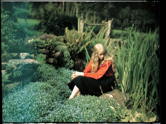 Вероятно, фотограф специально попросил Кристину надеть одежду ярко-красных цветов, при использовании техники автохрома именно яркие цвета лучше всего проявлялись на фотографиях.Не зная возраст этих фотографий, сложно сказать когда они были сделаны. Можно предположить, что это фото 50–60-х годов прошлого века.