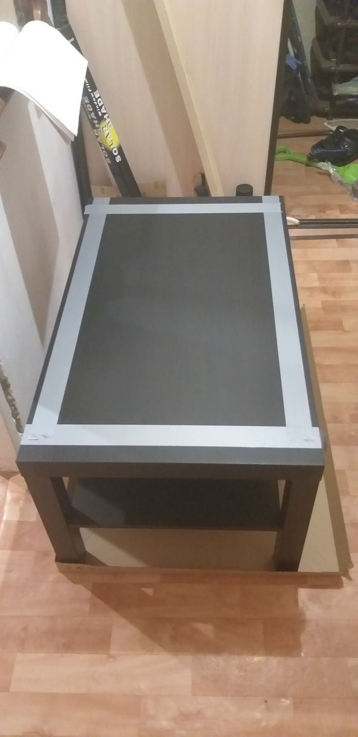 Размечаем(нужен малярный скотч, этот сдирает краску с поверхности стола)