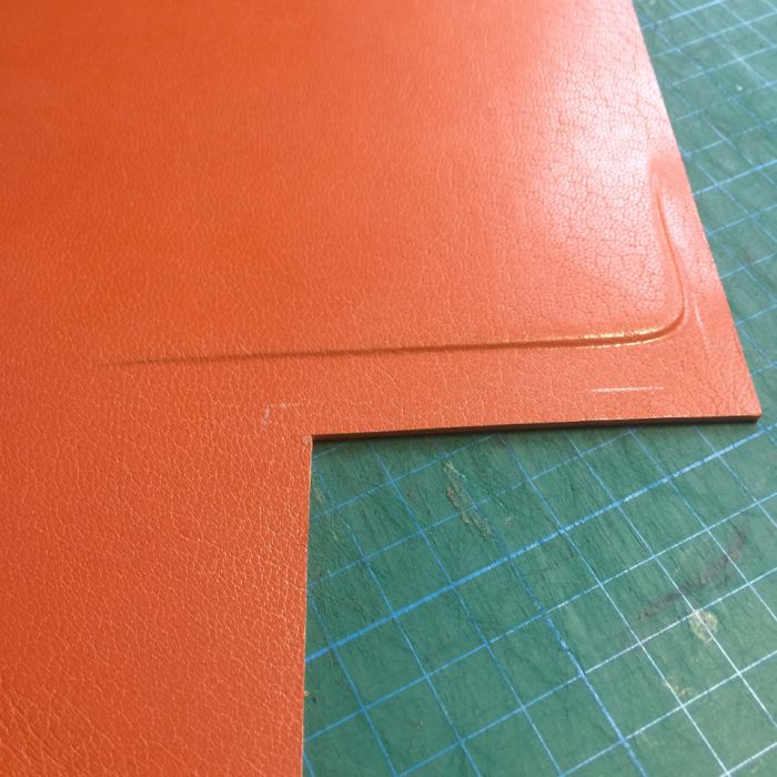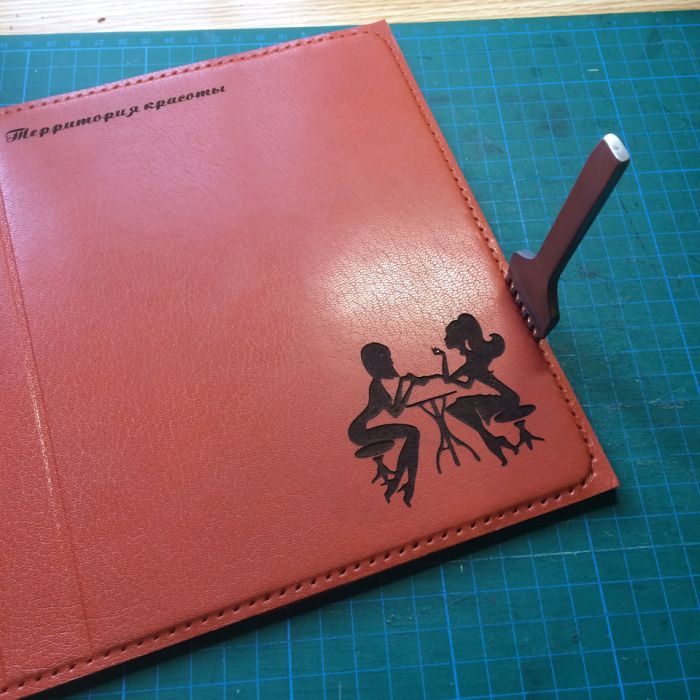 Так как кожа растительного дубления, она очень хорошо формуется … и мы по всему периметру заглаживаем по деталям вставки такой рельеф …