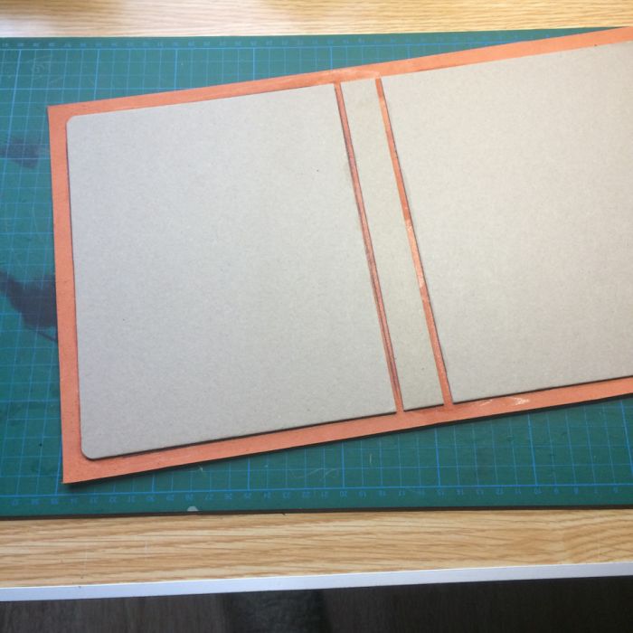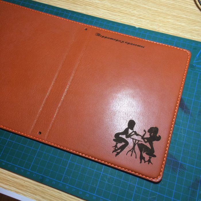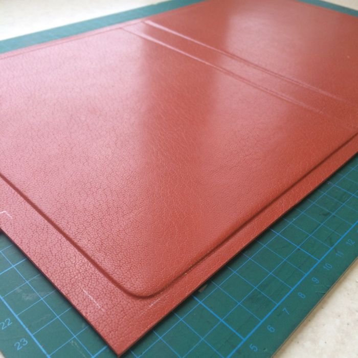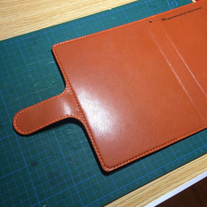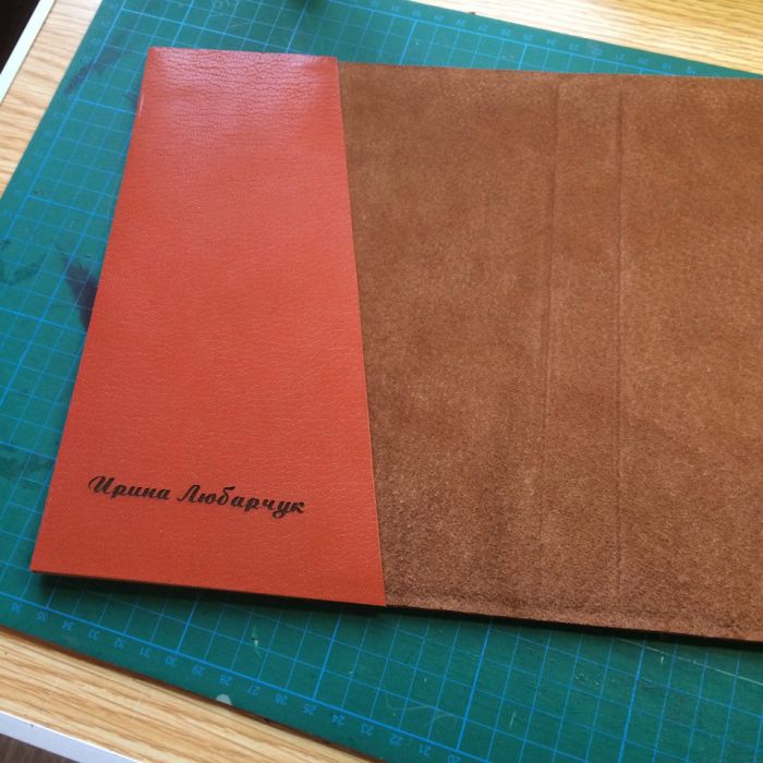 И так … вырезаем заготовку из кожи, размером 23 х 44 см и приклеиваем к ней картон, он дает изделию очень хороший каркас и соответственно долговечность в использовании …