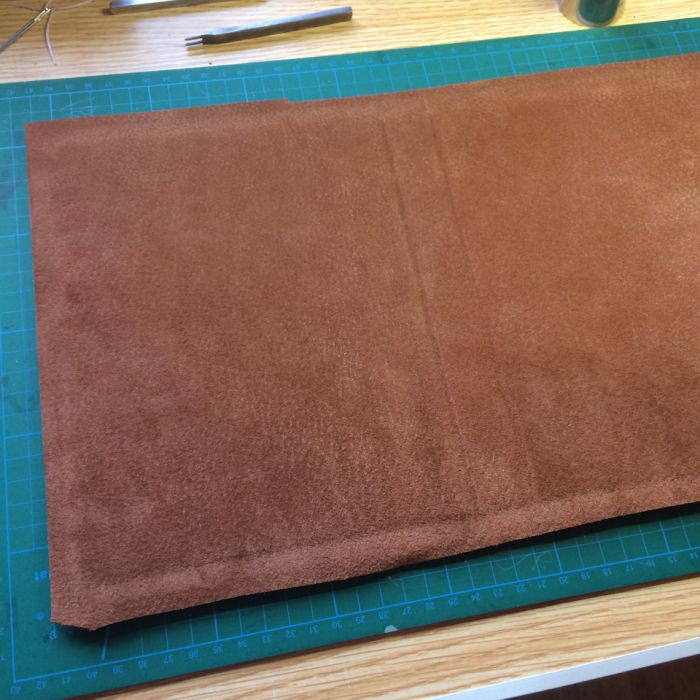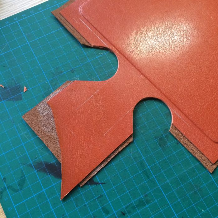 Приклеиваем с обратной стороны кожаный подклад и боковые карманы … для проклейки больших площадей использую наиритовый клей …