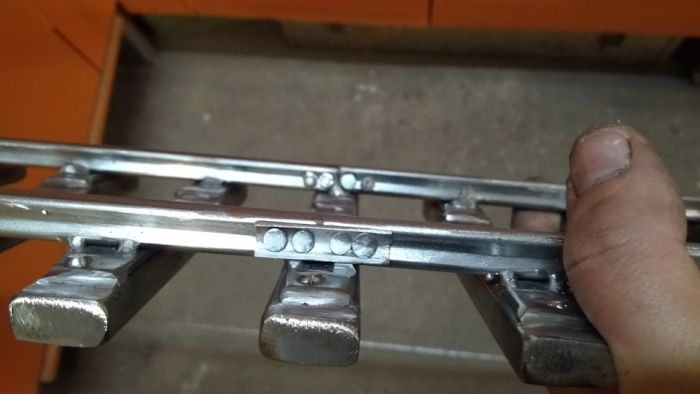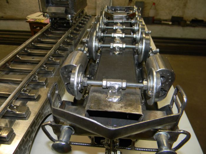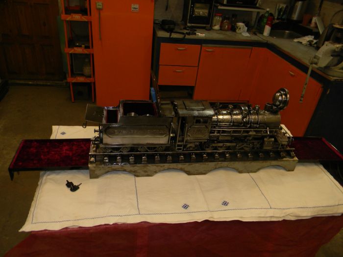 Когда все жестяные и малярные работы были завершены, впереди предстояла обшивка всех внутренностей, так как человек я далекий от дел портных, данное мероприятие давалось мне с большим трудом. Обшивалось(обклеивалось) бархатом. В итоге я добился желаемого результата, потратив на это пять вечеров. И что же у нас получилось в итоге? А получилась Красота длиною 88 см. по мосту в сложенном состоянии и 138 см. с открытыми ящиками. Высота 28 см. Ширина 20см. Вес сей поделки + — 25 кг. Забыл ещё добавить что вся конструкция разборная, т.е. сам паровоз прикручен винтом м6 к мосту, а между ними рельсы. Аналогично также и тендер. Всё это потому, чтобы побольше сделать детализацию и для удобной окраски всех элементов. Лимит данного сайта не позволяет добавлять больше фото, их конечно намного больше, можно просто в гости зайти ко мне в блог. Ну вот и всё, далее тест-драйв, но об этом конечно писать не стану, там ничего интересного!