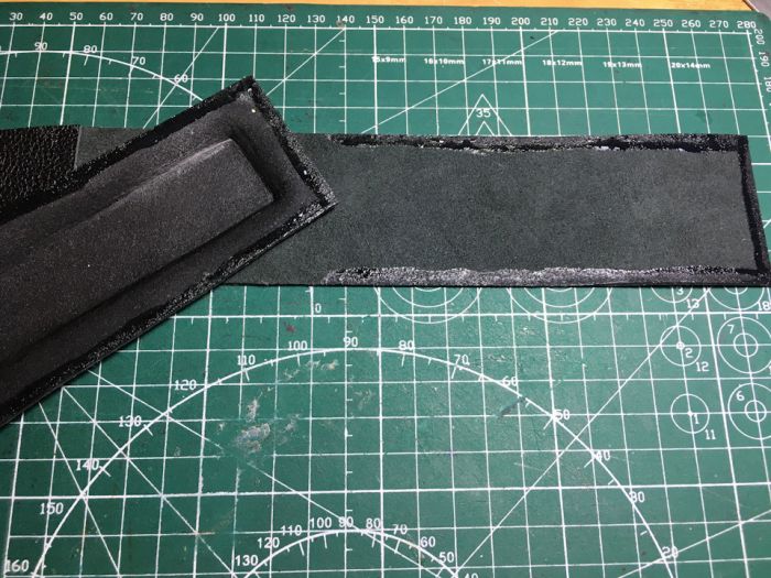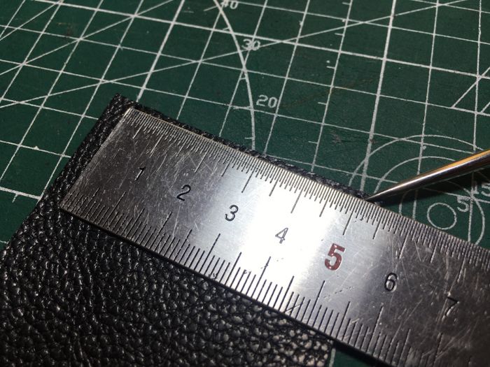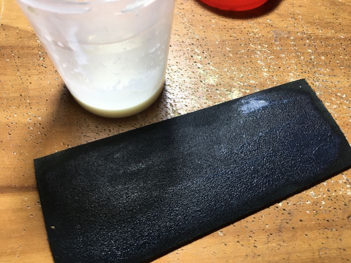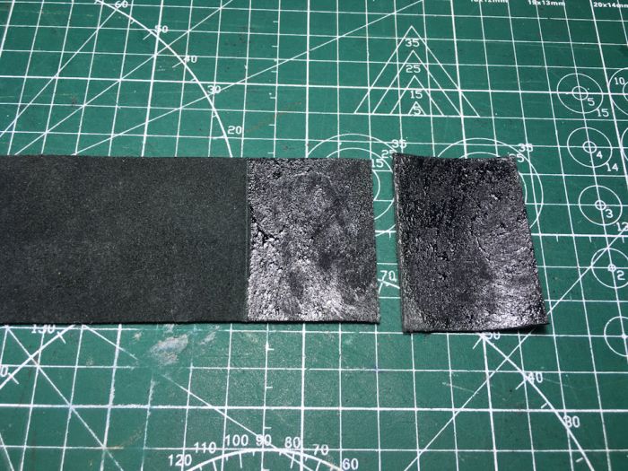 Обрабатываю срез. Наждачка, токонол и краска для урезов.
