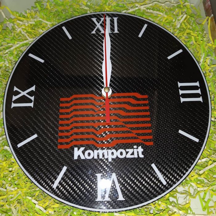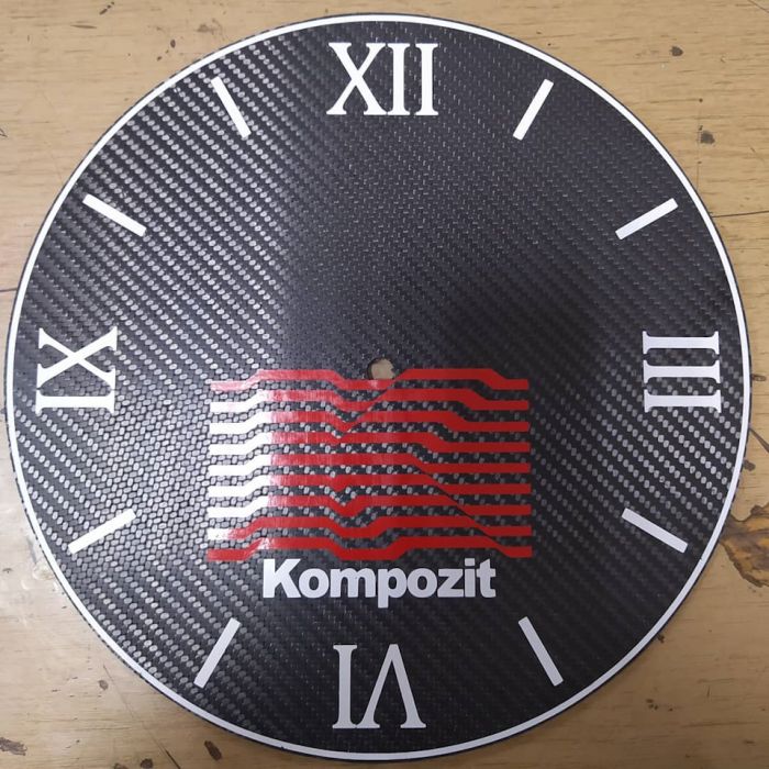 В программе corel draw нарисовал циферблат и логотип в векторном формате. Далее контур изображения был вырезан на самоклеющейся плёнке.После переноса плёнки на пластину настал черёд обрезки и лакировки с полировкой.