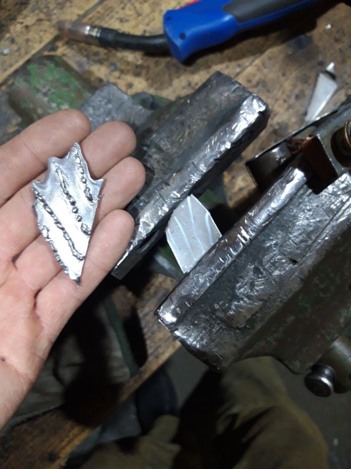 изготовил плавники и хвост навариванием шва на малом токе