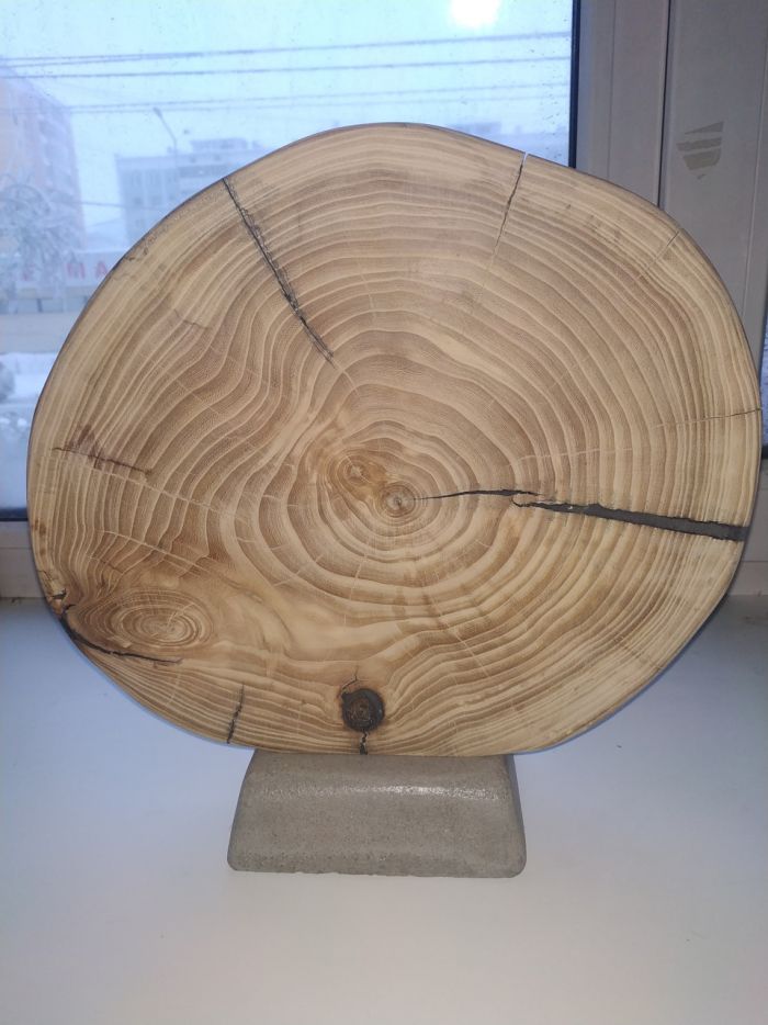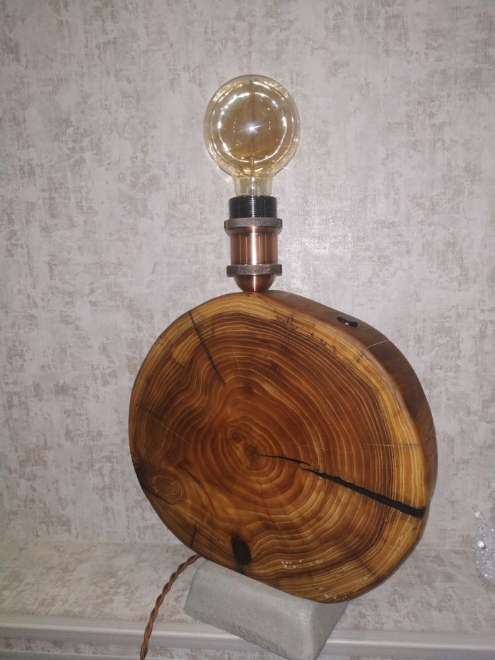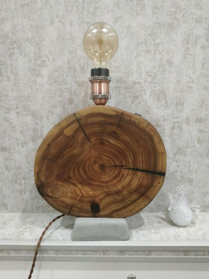Ножку для светильника отлил из цемента, при сборке изделия произошел казус и ножка треснула ровно по середине, в дальнейшем заменю на ножку из капа березы. Сейчас лежит на даче и добраться до него нет возможности.