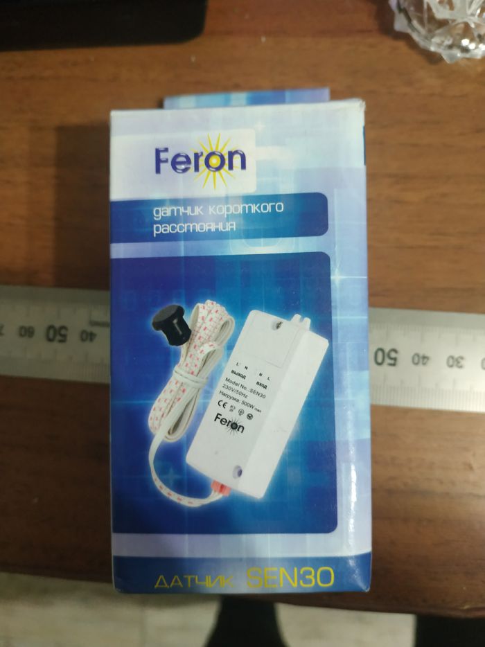 Использовать для включения обычный выключатель показалось слишком банально и был куплен датчик короткого расстояния от Feron