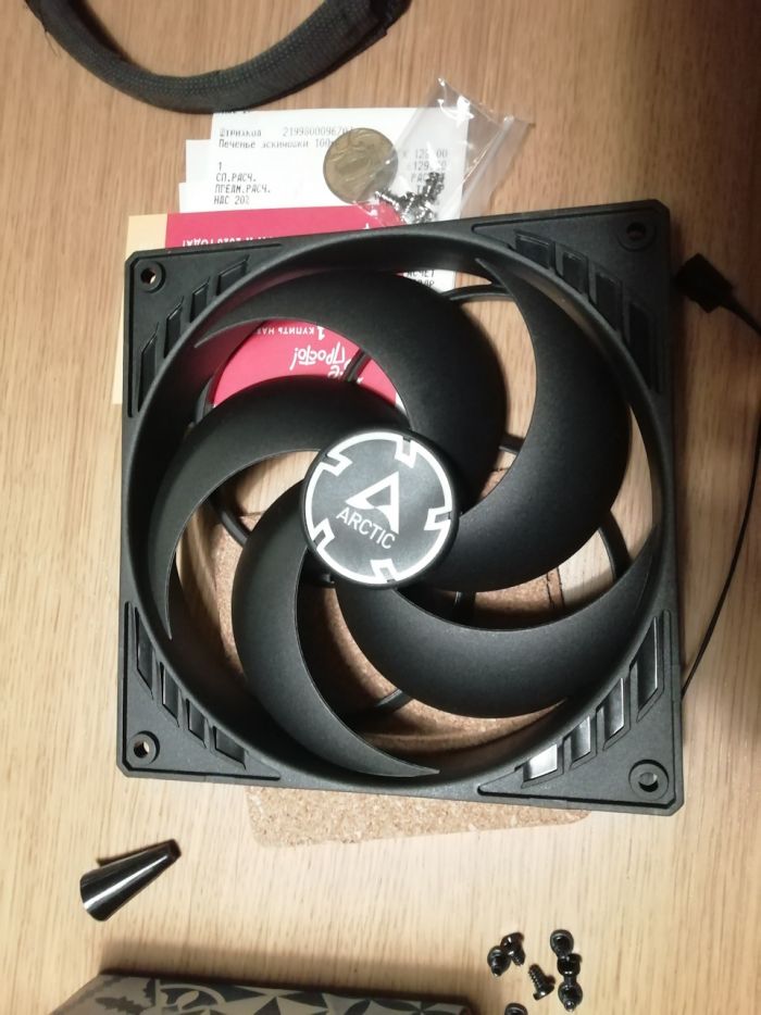 Отдельного абзаца требует описание системы охлаждения. Изначально, процессор был куплен в BOX версии, это даёт 3 года гарантии и вентилятор в комплекте. Так вот его можно выкинуть сразу – шумит жутко, охлаждает плохо. Заменил его на почти бесшумный ID-COOLING IS-40X, но так как он будет находиться под блоком питания и гонять горячий воздух, то дополнил конструкцию большим бесшумным Arctic P14 PWM 140x140мм на гидродинамическом подшипнике. Все вентиляторы 4пин, т.е. можно настраивать скорость вращения в зависимости от температуры.