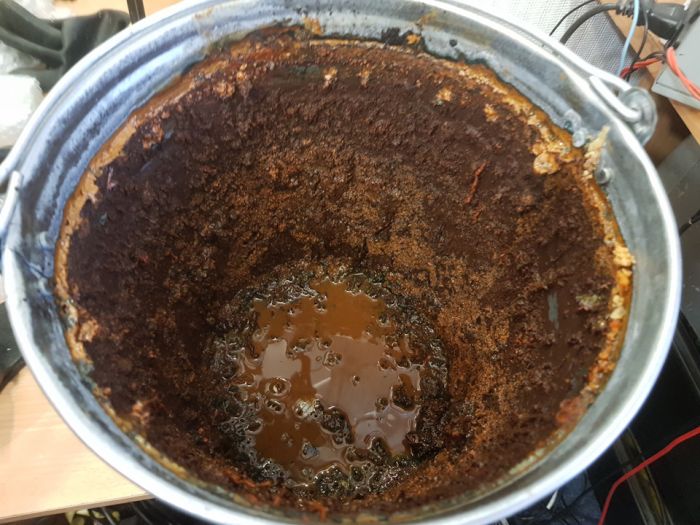 Новое ведро(оцинковку) купил и пачку кальцинированной соды бытовой.Можно и пищевую, но она слабее, можно гранулы для прочистки засоров в трубах, но она ядовитый газ выделяет сильно, хотя и ржу отъедает хорошо.