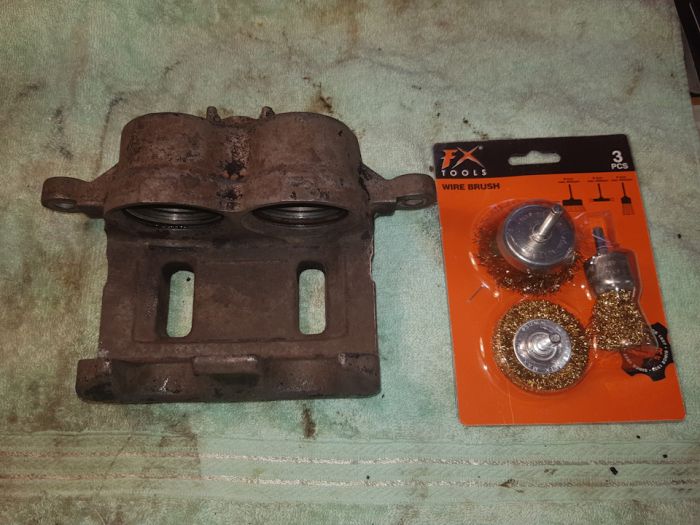 После мойки купил самый дешевый китайский набор щеток на дрель за 2$ и дочистил суппорт.