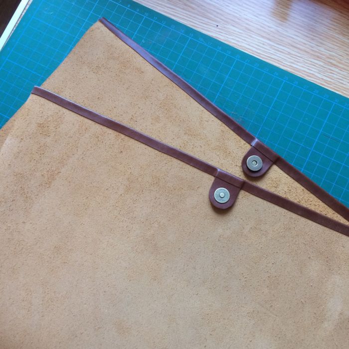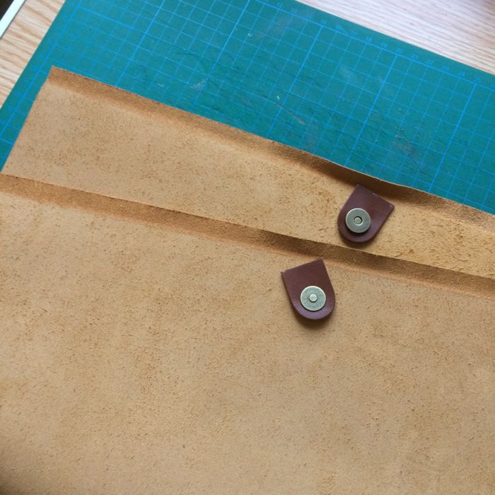 Застежка будет с магнитной кнопкой, в готовом виде ее размер 2 х 3 см.