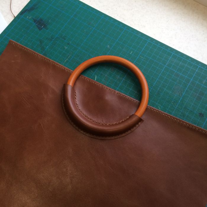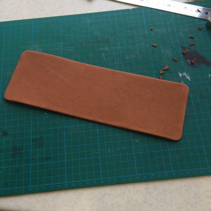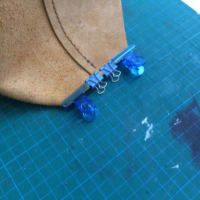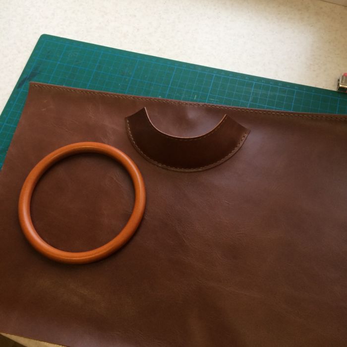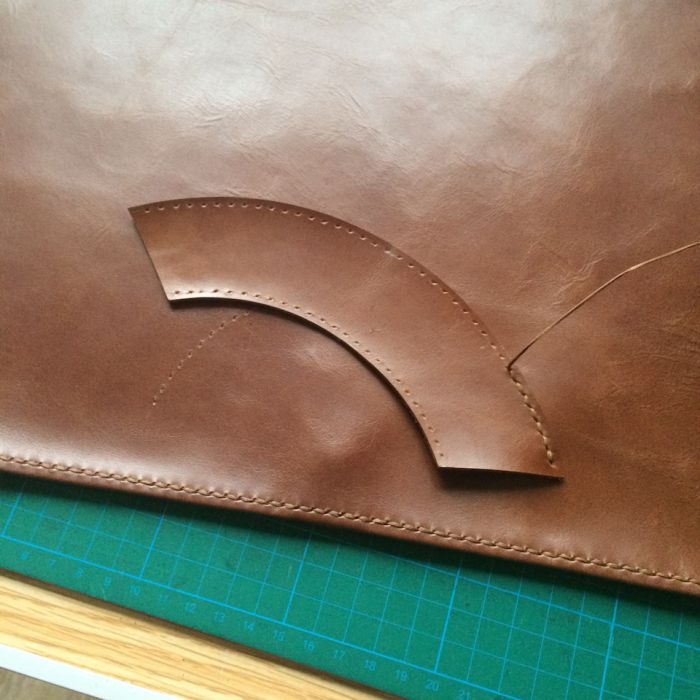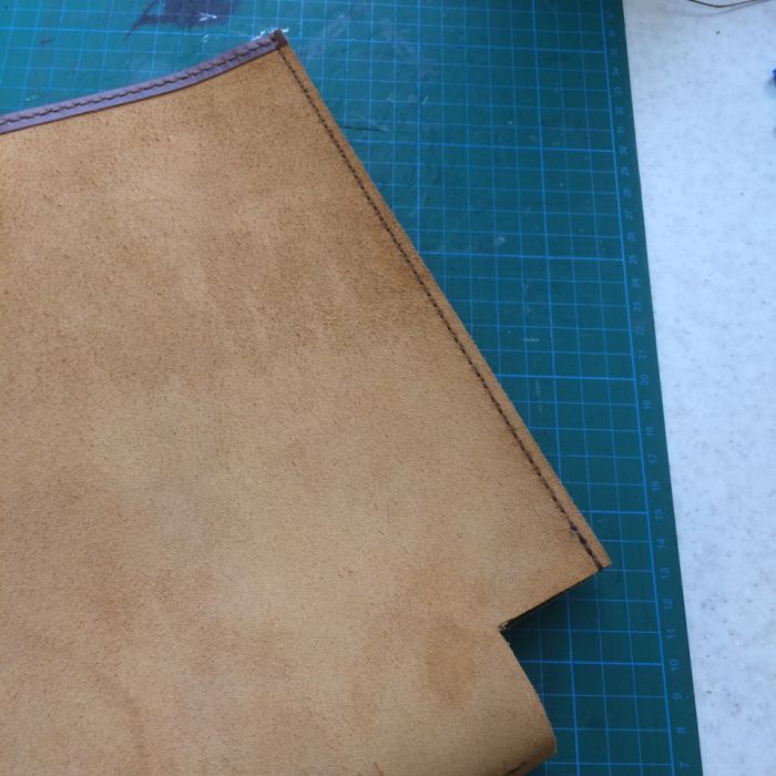 Далее утончаем верхний край сумки для подворота, у кого нет такой возможность можно просто подвернуть, но при этом лучше отстучать сгиб молотком.