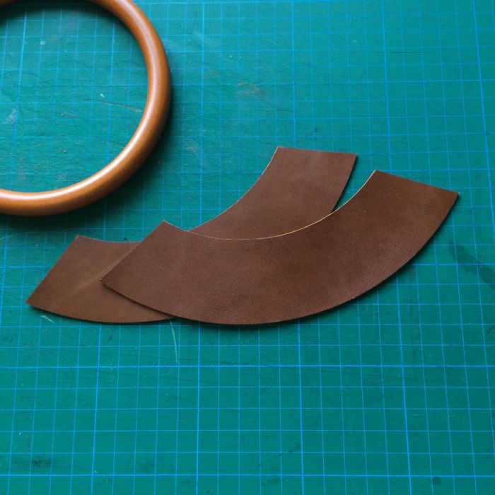В качестве ручек берем деревянные кольца и вырезаем для них такое крепление …