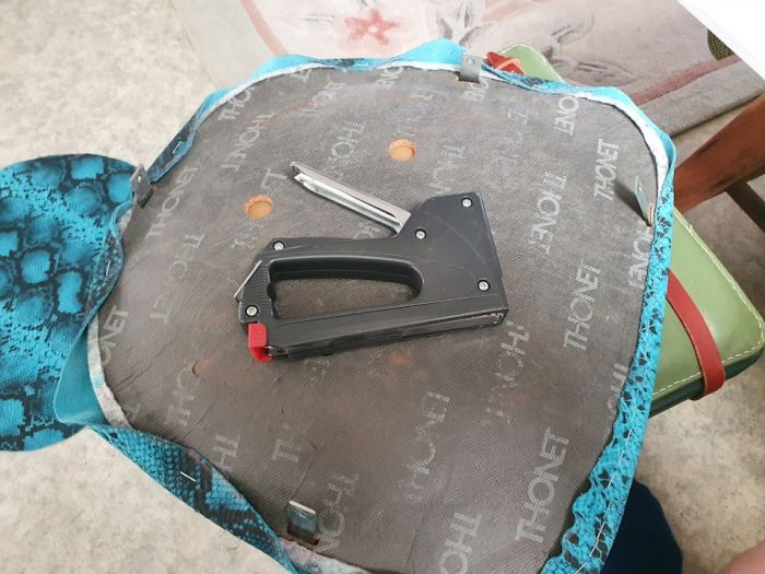 Дерево было в хорошем состоянии а вот обивка оставляла желать лучшего.Синими они были от рождения, но все равно решил освежить