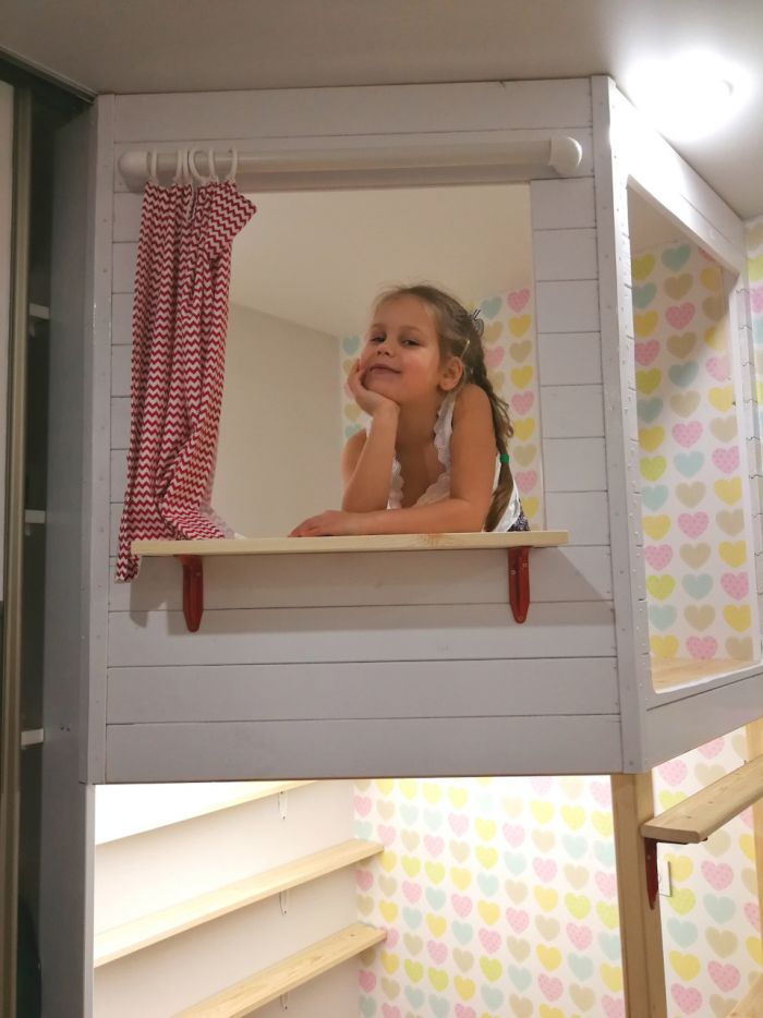 Вот такой игровой домик у меня получился. Теперь, мы там часто проводим время. Домик получился весьма вместительный. Со своим ростом в 1.77м я спокойно ложусь по диагонали и могу выпрямить ноги. Делаем уроки, читаем, играем в карточные игры (не азартные). Дочка счастлива, а это самое главное.
