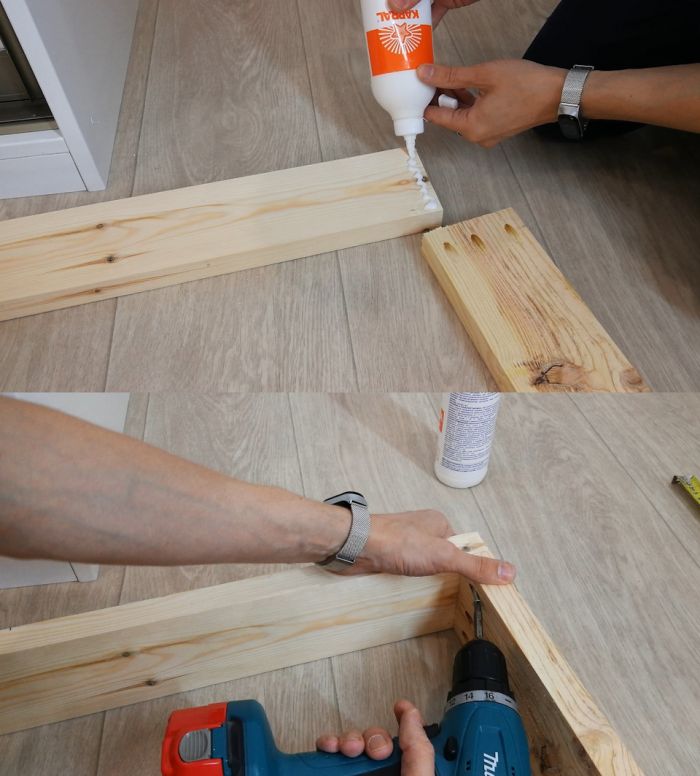 Соединять каркас буду с помощью столярного клея ПВА и шурупами на косой шуруп.