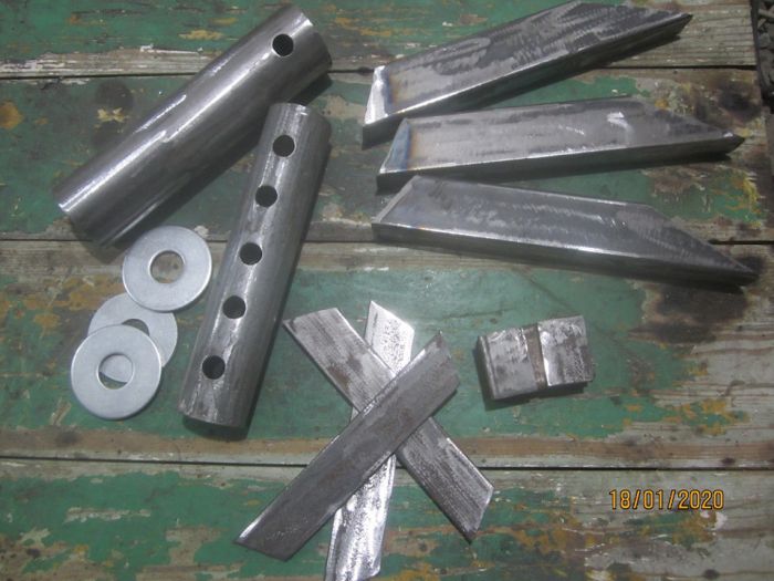 Ножки изготовлены из профильной трубы 25Х45 с толщиной стенки 3мм, подобрал два отрезка трубы чтоб входили друг в друга. В подвижной труде отверстия сделаны с шагом 20мм, диаметром 12мм.Изготовил себе 4 шт, прошли тест на 5 тоном прессе, жаль во время теста не было камеры под рукой. На видео весь процесс изготовления Приятного просмотра.