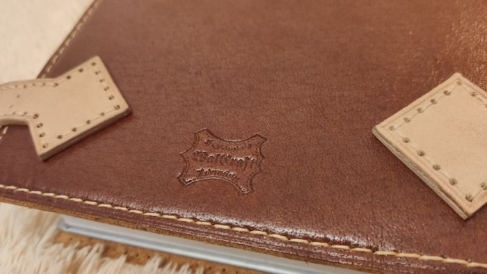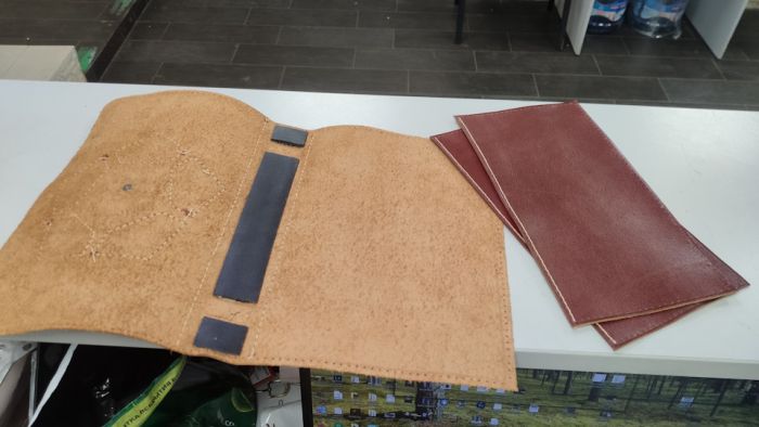 … и приступаю к финальным этапам. Для этого пришиваю все ремешки к задней части обложки и на лицевых ремешках ставлю хольнитены, по две штуки на каждый, для того, чтоб было красивее и ремешки не сильно болтались в открытом состоянии.