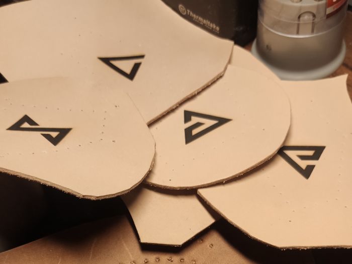 Каждая книга Сапковского имеет разную толщину, поэтому некоторые части из этого чертежа будут уникальными и не смогут подойти к другой книге.После определения размеров знаков, в Фотошопе отрисовываю картинки для последующего прожига на моём малюсеньком лазерном выжигателе.