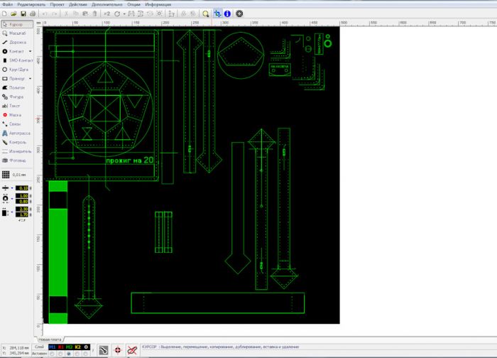 Определившись с дизайном, залезаю в свою любимую программу для разводки печатных плат и рисую в ней чертёж будущей обложки.