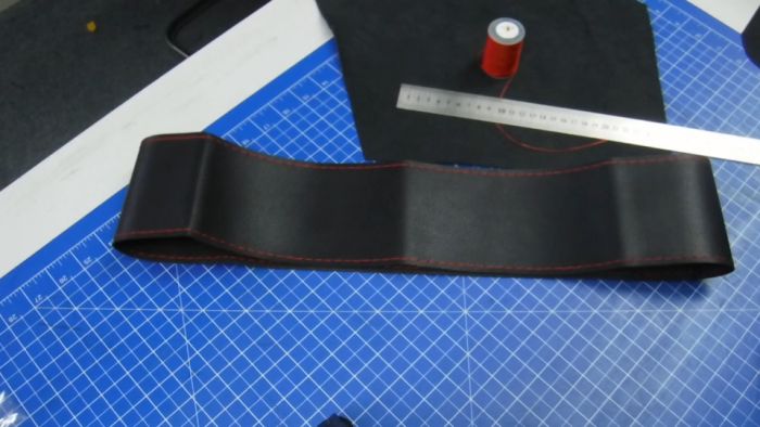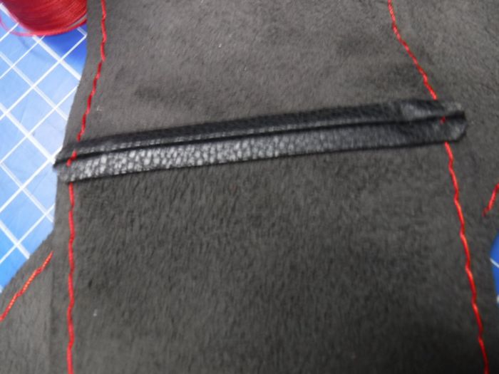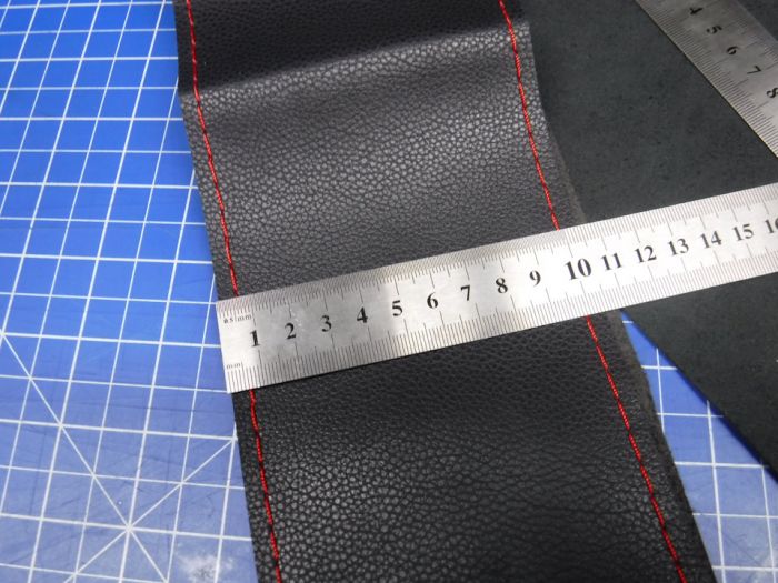 Сделал строчку по краю с обоих сторон, отступ 5мм, шаг строчки 8мм