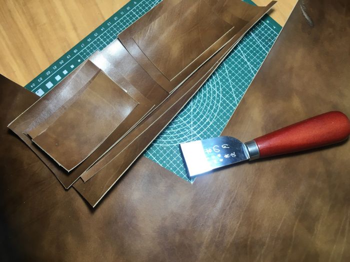 Холдер придумал сам, удобно, просто, в карман легко помещается. Вся кожа толщиной 0.8,0.9 мм, плотная не тянется, при этом эластичная и мягкая тактильно. В работе использовал средство для уреза, краску. Всем отличного настроения приятного просмотра.