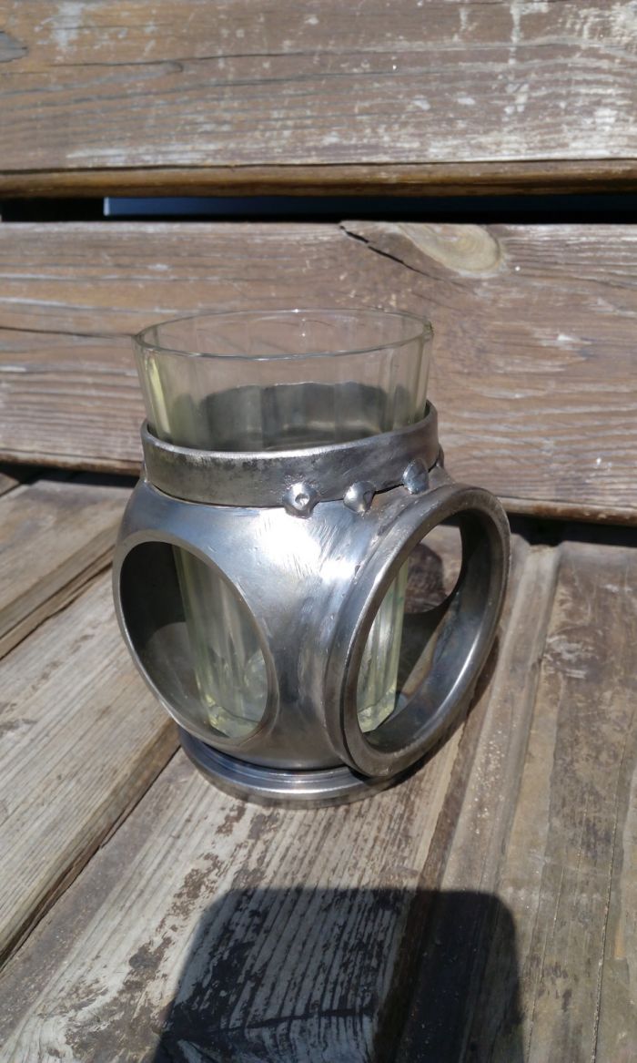 Подстаканник естественно тяжелый, и навряд-ли его будут использовать по прямому назначению, но можно ведь и поставить на стол и использовать как карандашницу-хороший вариант.
