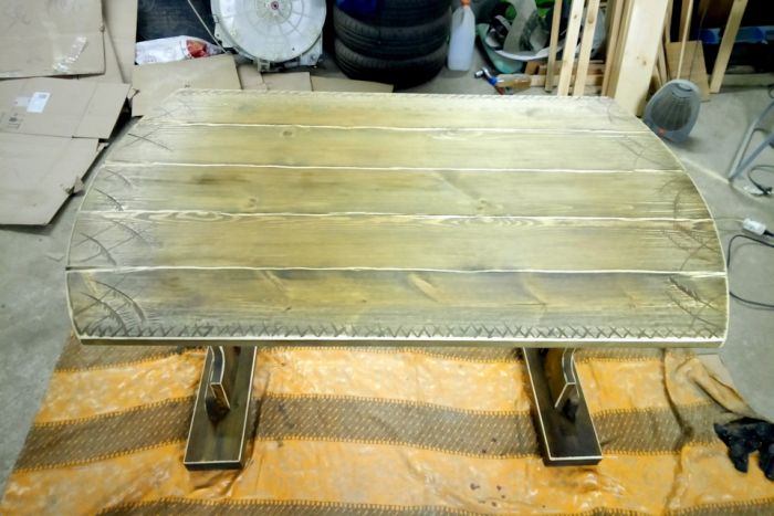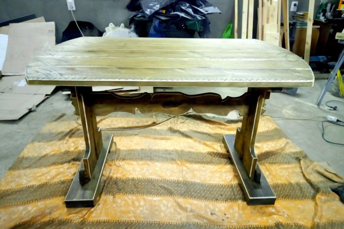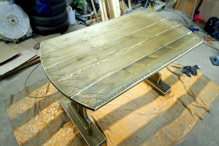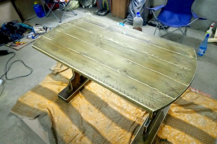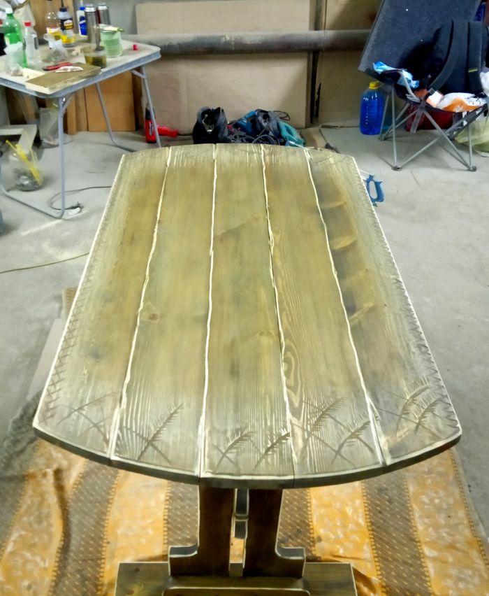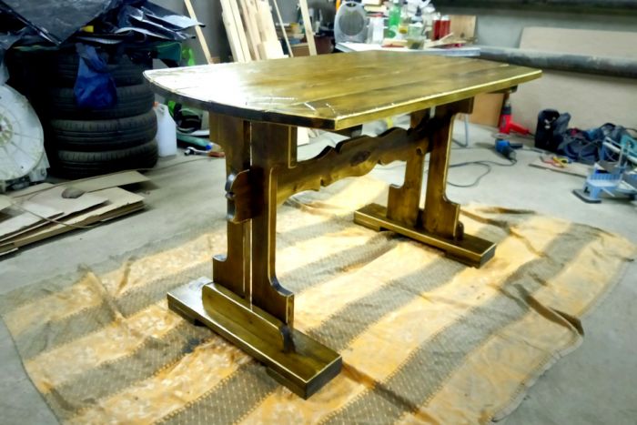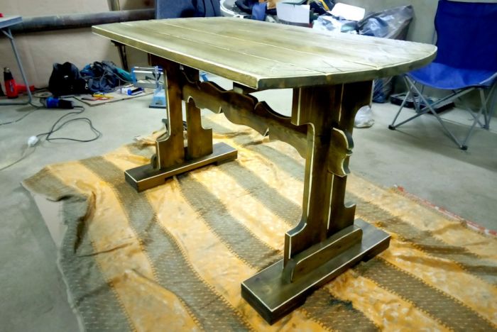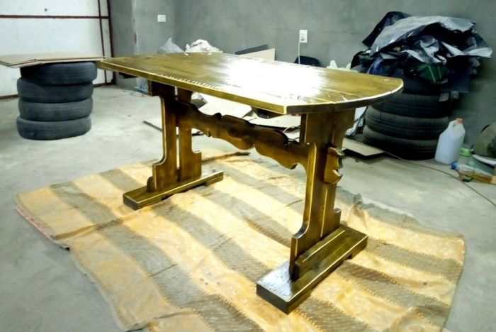 Стол своими руками Запостил: Viking,8-01-2021, 00:00вКак это сделано / Свежее Ребятки, всем привет! Продолжаю рассказ об изготовлении стола из дерева. Сегодня покрыл стол морилкой, цвет "Орех".После высыхания морилки, обработал торцы стола наждачной бумагой.После обработки покрыл стол лаком.Стол готов! Нравится 12 Не нравится 3 Комментарии (1) Добавить комментарий Прокомментировать Введите два слова с картинки: Отправить #1 Гость Тоха Гость 8 января 2021 07:28 0 Прикольный цвет. Как будто бронзовый стол. Ответить