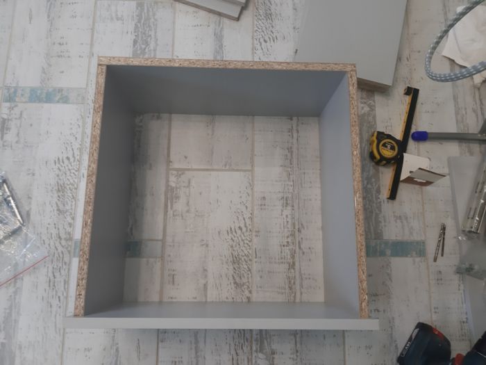 И вот когда я собрал ящики и начал их вставлять на место я понял, что верхний ящик установить не получится, ему будет мешать подоконник(( Ну ничего страшного, будет два ящика, а вместо третьего полка