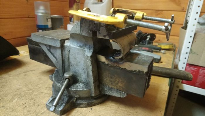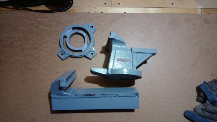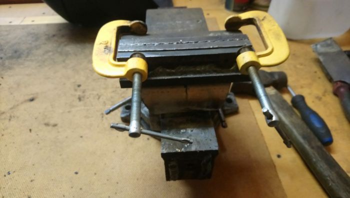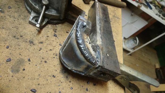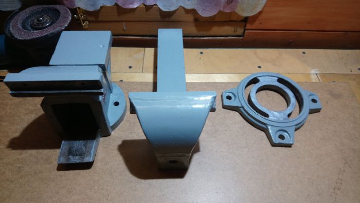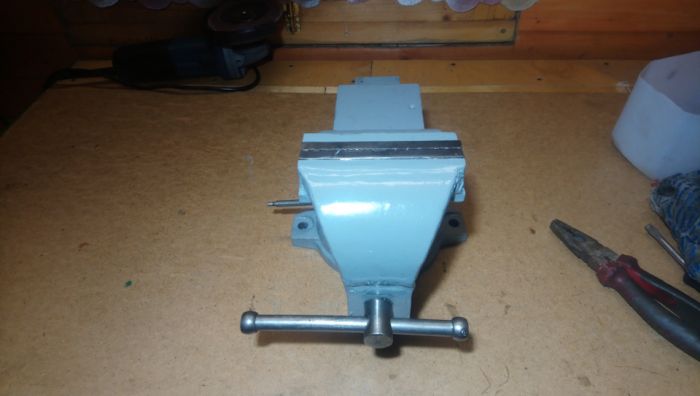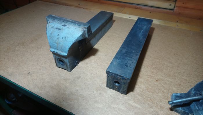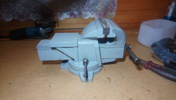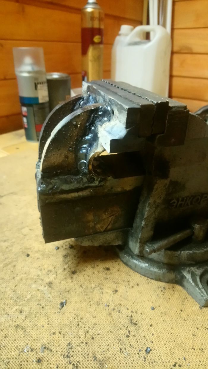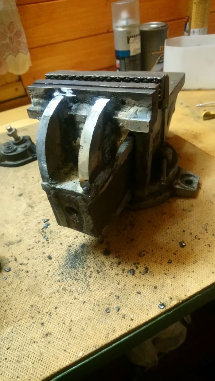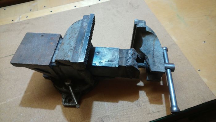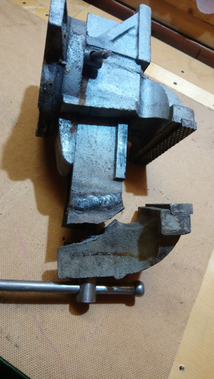 Всем здравствуйте! Данные тиски лопнули давно от больших нагрузок. Один раз я пробовал их варить электродами по чугуну, но после сварки их опять на долго не хватило. Так и лежали они больше года без дела в углу, пока не пришла мысль их восстановить. Лопнувшую часть я решил просто сварить заново из обрезков железа, которые валялись без дела на работе. Толщины 10мм, 5мм, 4мм. Затраты на восстановление практически нулевые, т к железо, электроды, диски на болгарку и краску казенные!