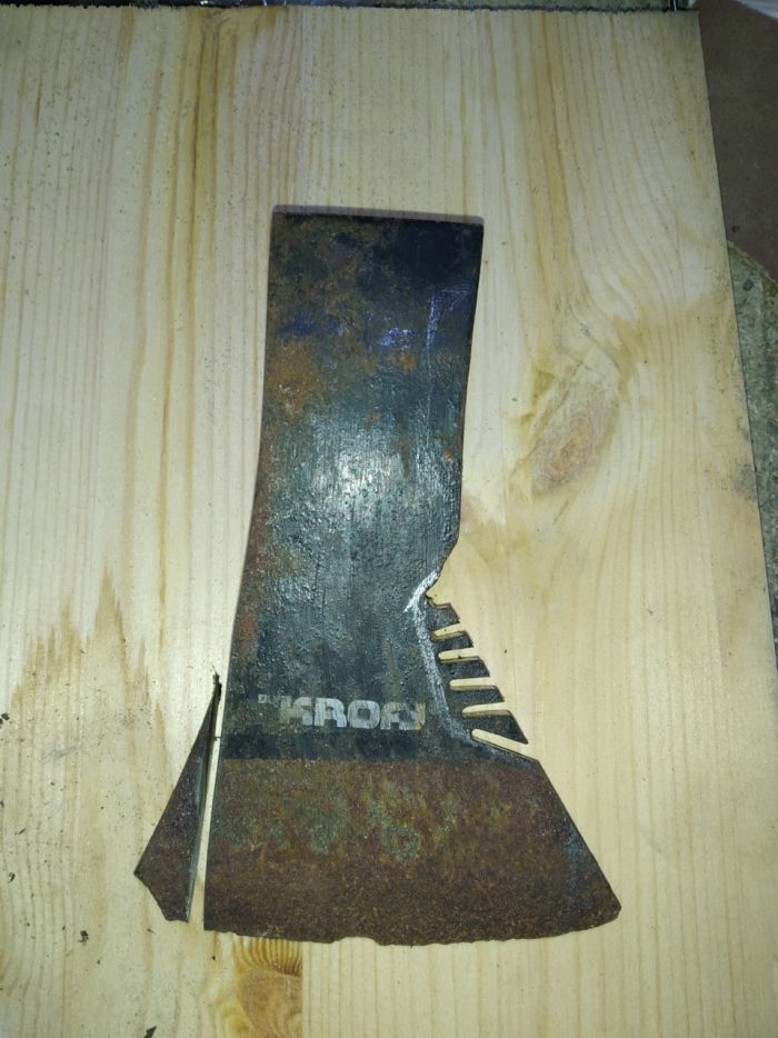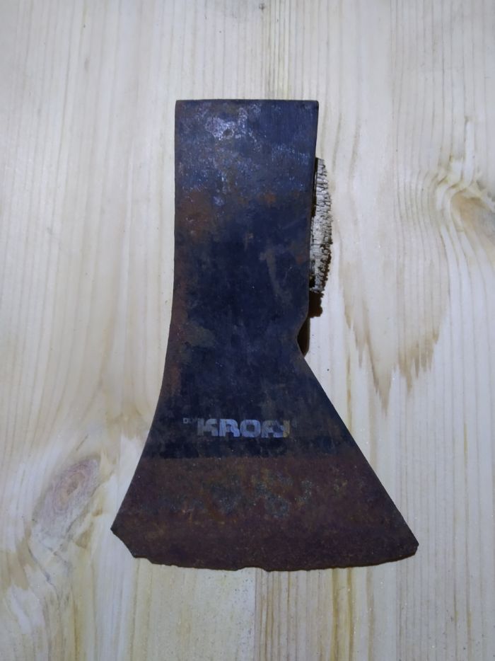 После того как сын где то в лесу посеял мой топор, пришло понимание что ему нужен свой собственный. Конечно можно купить в сетевом магазине что то рублей за 500, но это не наш метод. Будем делать сами из того что есть. Летом, на побережье моря был найден поломанный топорик, он и будет заготовкой. Качеством он конечно не ахти, но для «детских целей то что надо, сломать или потерять не жалко.