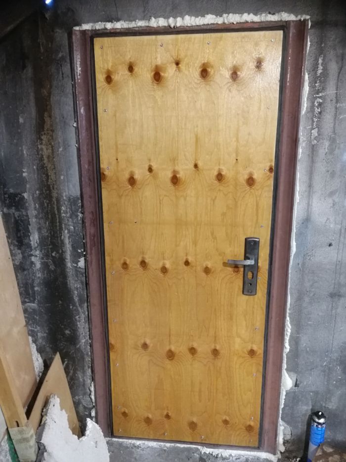 Почитав объявления, выяснил, что все предлагаемые на авито двери выше на пару десятков сантиметров. Перспектива долбить проем не прельщала, зато на халяву в куче металлолома обнаружилась жестяная входная китайская дверь, причем, по размеру пуля в пулю с проемом. Так что сразу прошу не пинать, если кому-то мой пост покажется бесполезным. Тем более бюджет новой двери составил цену баллона пены-все остальное было в наличии.