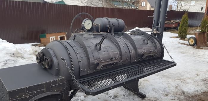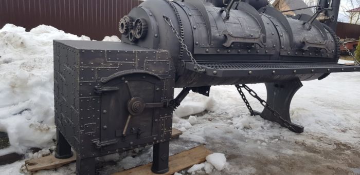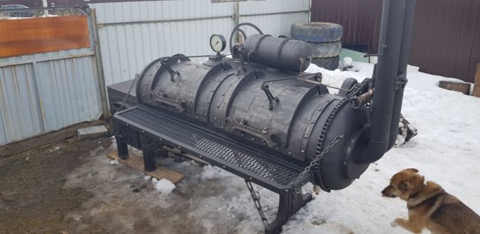 Проект смокер коптильня подошёл к логическому завершению, протоплен покрашен и ждёт погрузку на отправку заказчику. Клиент доволен, а это самое главное, работа интересная, тем что все делалось в первый раз можно сказать из металлолома 80%… Буду ли делать ещё не знаю… Сами фото процесса особо не снимал так как то времени то руки грязные, выкладываю может кому понравиться и рискнёт сделать что то похоже.